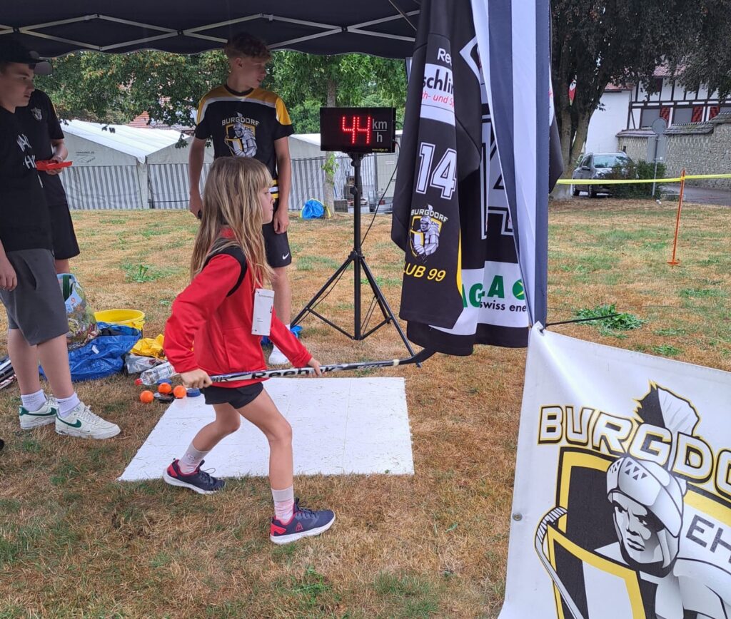 Bereits 54 Mal fand die Turnerchilbi in Fraubrunnen statt. Unter dem Motto «Vereine mit und nicht gegeneinander» hat die Turnerchilbi seit Jahren immer wieder Gastvereine zu Besuch. Es geht nicht darum, einander Mitglieder abzuwerben, sondern es soll den Besuchern zeigen, was Grossartiges organisiert werden kann, wenn man gemeinsam und nicht gegeneinander arbeitet. Das ganze Weekend hatte die «Chiubi» Wetterglück, ausser am Samstagnachmittag. Normalerweise ist dann auf dem Sportplatz, während dem Schülerwettkampf ein reges Kommen und Gehen. Also genau der richtige Zeitpunkt und Standort, um den EHC Burgdorf zu präsentieren. Bei teilweise garstigem Wetter haben unser U15 Spieler zusammen mit Fäbu den Stand betreut und den Besuchern gezeigt / erklärt, was den EHC Burgdorf ausmacht. Auch beim EHCB geht es nicht ohne ein «Miteinander». Die aufgestellte Schussanlage resp. die Geschwindigkeitsmessung wurde dabei in allen erdenklichen Formen und Schlagbewegungen getestet. Schüsse über 100 km/h waren dabei keine Seltenheit. Trotz schlechtem Wetter war dies ein gelungener Auftritt vom EHC Burgdorf und evtl. konnte dabei ja trotzdem das eine oder andere zukünftige Mitglied gewonnen werden. Der EHC Burgdorf bedankt sich bei der Turnerchilbi Fraubrunnen für die gebotene Möglichkeit und wünscht auch für die «Chiubi» 2024 alles Gute.